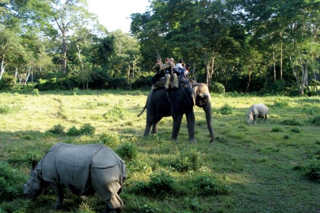 Another highlight of the trip is a visit to the Chitwan National Park in the lowlands of the Terai. It was founded in 1973 as a sanctuary for the endangered rhinos and in 1984 declared a national park by UNESCO. On the back of tame elephants, we roam through the jungle. The reserve is home to rhinos, deer, wild boars, crocodiles, alligators, river dolphins, tigers, leopards and more than 400 species of birds.